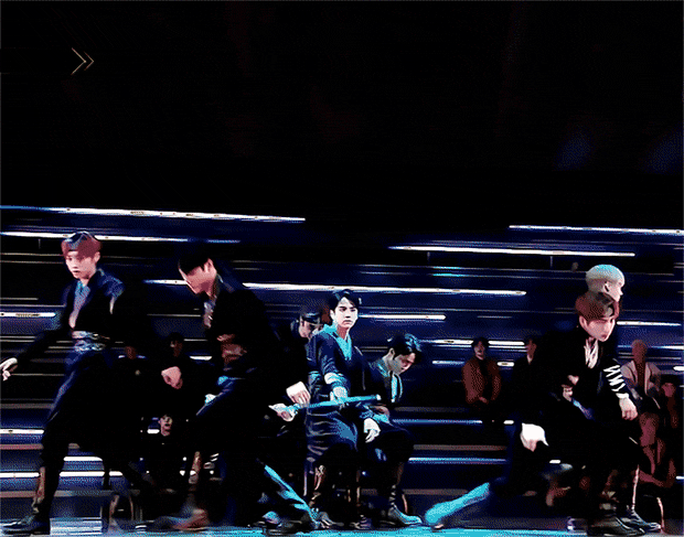 화랑 컨셉으로 등장하여 칼군무를 선보인 더보이즈