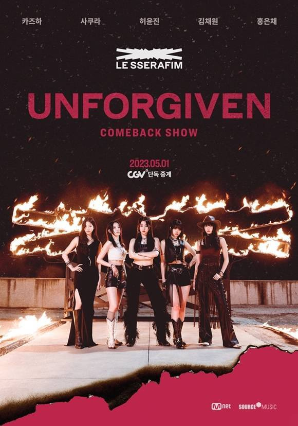 24일 CGV에 따르면 오는 5월 1일 오후 7시 Mnet 디지털스튜디오 M2에서 방송되는 르세라핌의 첫 번째 정규앨범 발매 기념 컴백쇼 'LE SSERAFIM COMEBACK SHOW – UNFORGIVEN in CGV'가 중계된다.