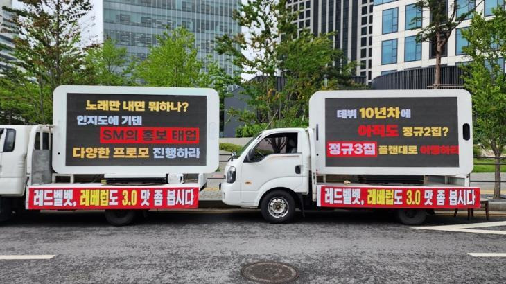 "데뷔 10년 차에 아직도 정규 2집"…레드벨벳 팬덤, 소속사 앞 트럭 시위
