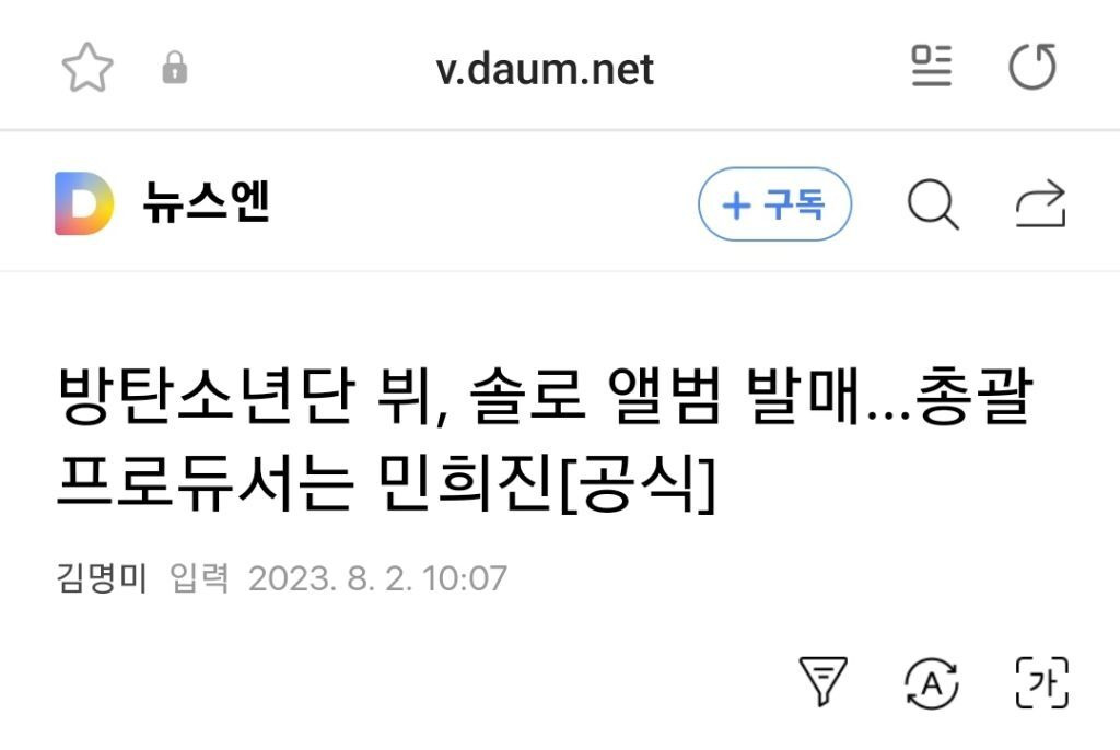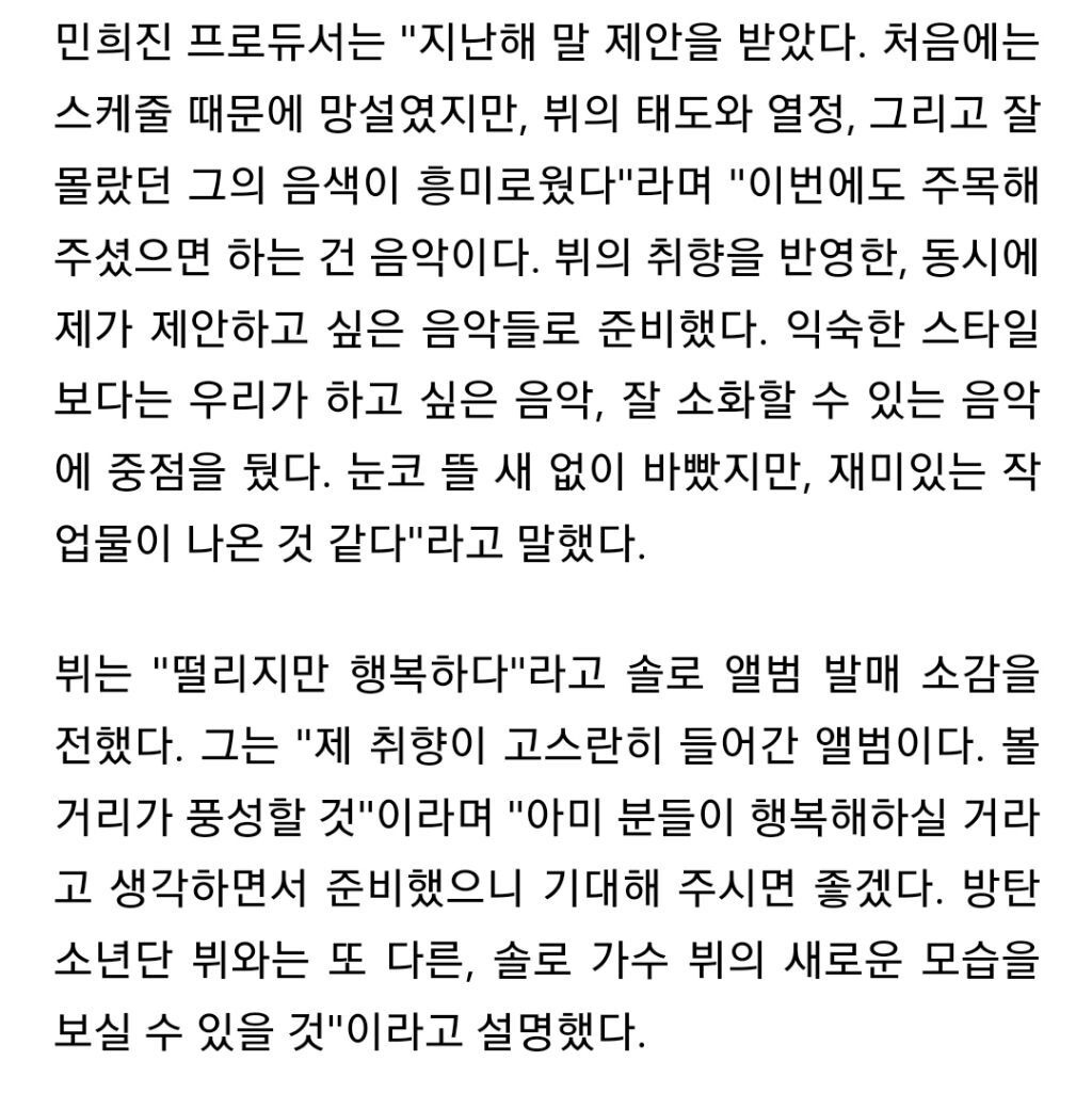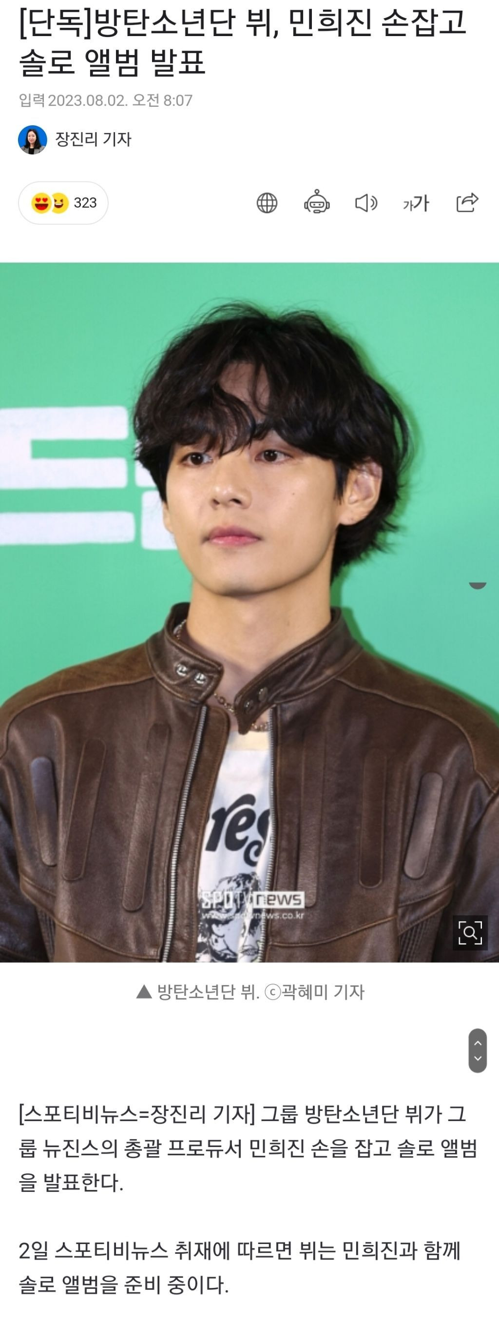 [단독]방탄소년단 뷔, 민희진 손잡고 솔로 앨범 발표 + 공식 기사