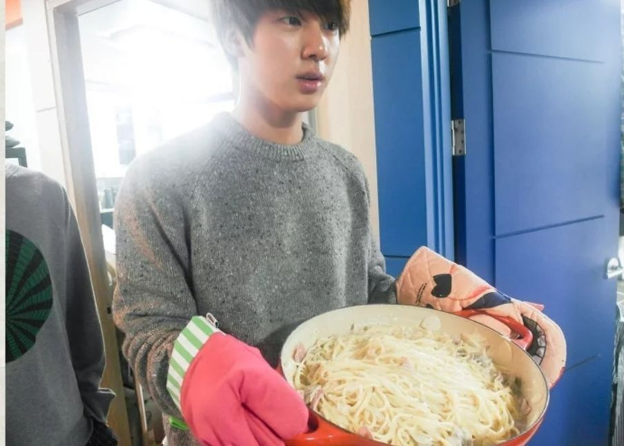 진 어머니가 새해에 아들이 떡국 못먹으면 슬퍼하신다고 진이 숙소에서 요리함ㅋㅋㅋㅋ
