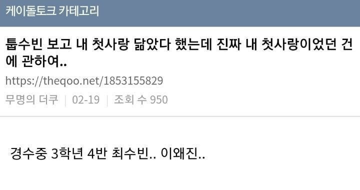 학창시절 내성적이라 인기가 없었다는 남자아이돌..