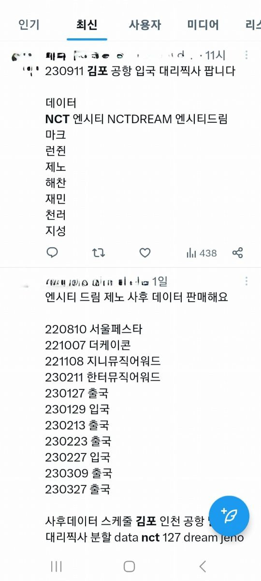 9월 11일 NCT 김포 입국 사진을 판매한다는 엑스(옛 트위터) 사용자의 글. 입국과 동시에 올라온 포스팅이다. 사진 엑스 캡처