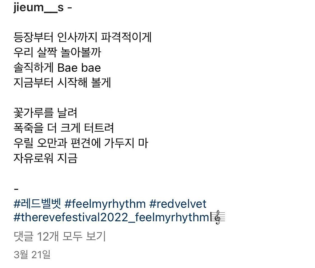 레드벨벳 Feel My Rhythm - 3월 21일 발매