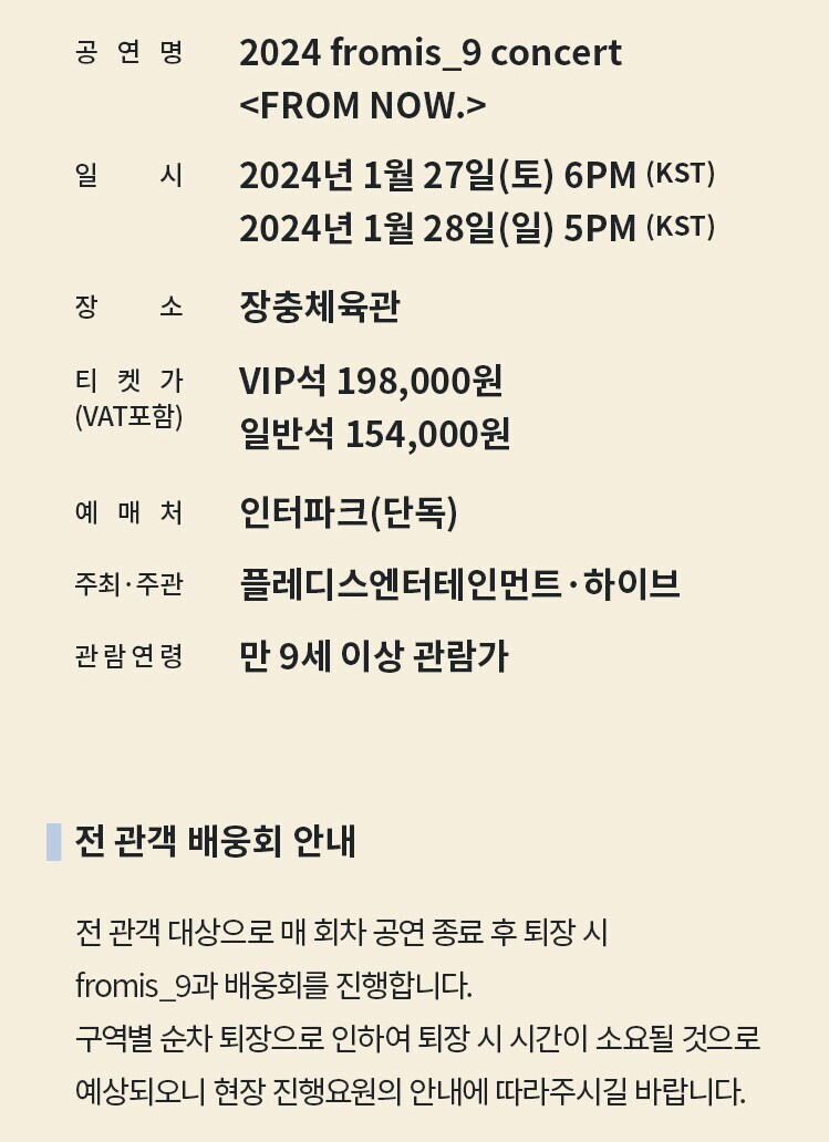 장충체육관에서 하는 프로미스나인 콘서트 가격