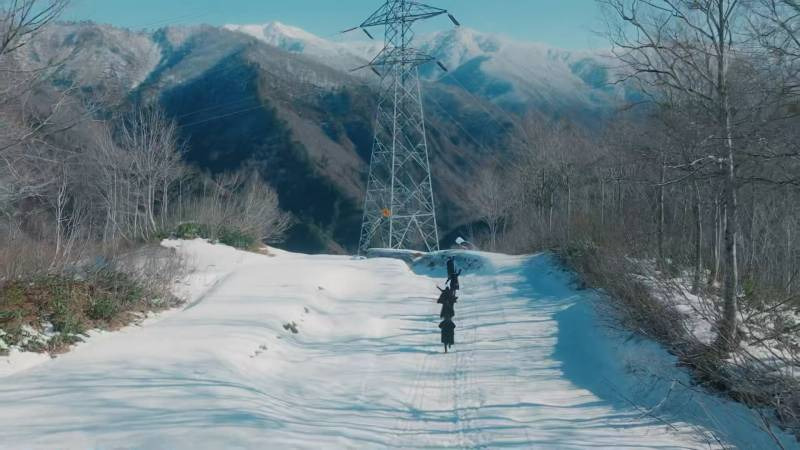 하얀 연을 날리면서 가는 멤버들