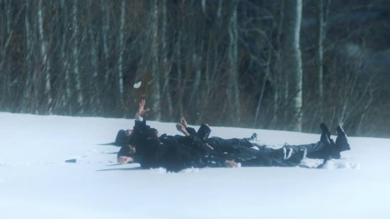 그리고 다시 여주는 없고 누워있는 멤버들 위로 날아다니는 나비