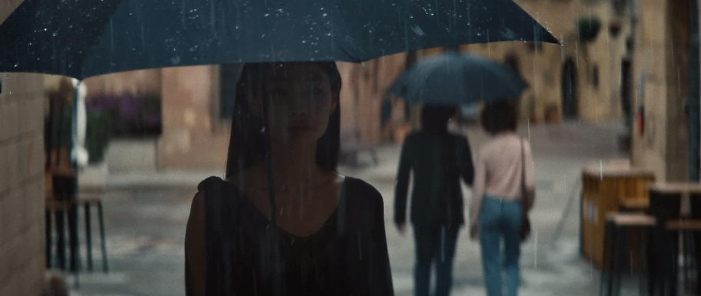 우산은 앞 남자 이어주려고 가져간 거 맞는데, 결국 비가 와서 그렇게 될 거라는 걸 알았기 때문에