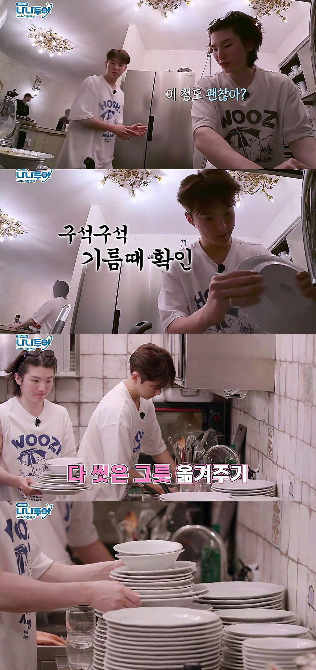 우지가 설거지 먼저 시작, 다른 멤버들은 접시 날라줌