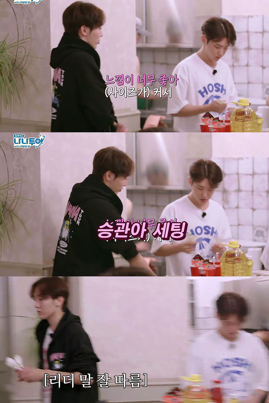 방 선택 끝난 호시 원우가 짐 같이 옮겨주니까 이딴 상황극 하면서 장 본 거 정리 중
