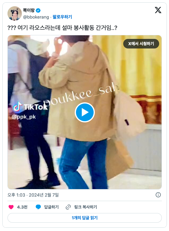 > 설 휴가 받자마자 라오스 공항에서 발견됨