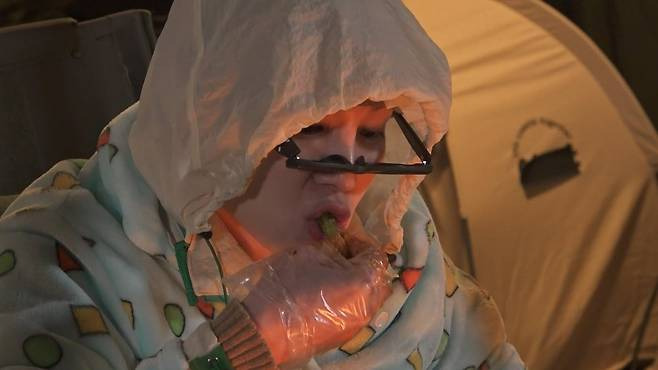텐트를 치다 넋이 나간 키의 모습도 포착돼 눈길을 모은다. 한쪽을 겨우 고정하면, 다른 쪽이 도미노처럼 무너지는 상황이 이어지며 ‘캠핑 초보’ 키의 무한 텐트치기가 시작된 것. 게다가 아끼는 선글라스까지 망가져 망연자실한다. 키는 영혼이 가출한 모습을 보이는가 하면 챙겨온 잠옷을 대충 걸치고 조촐한 저녁으로 쓰린 마음을 달랜다.