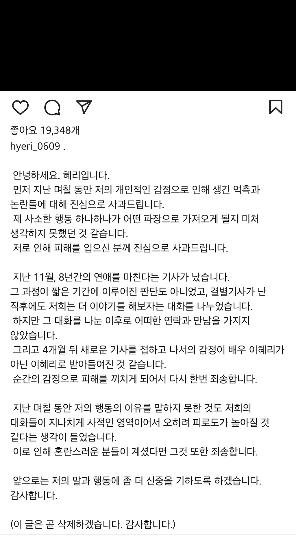 - 기사는 났지만 당사자들끼리 완전히 끝이 아닌