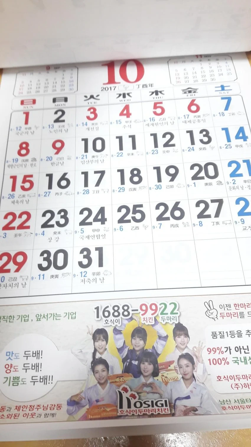 호식이 반응이 뜨거워 찾아본 호식이치킨 달력 굿즈