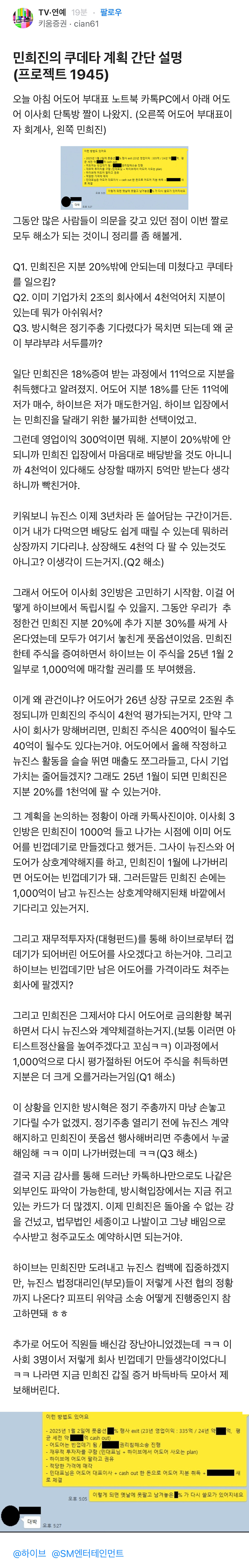 민희진의 쿠데타 계획 간단 설명 (프로젝트1945) -블라인드