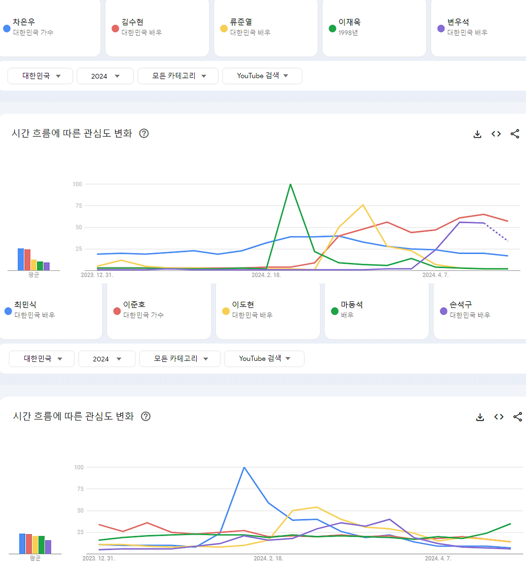 2024년 현재까지 국내 유튜브에서 가장 많이 검색된 남자배우 TOP10
