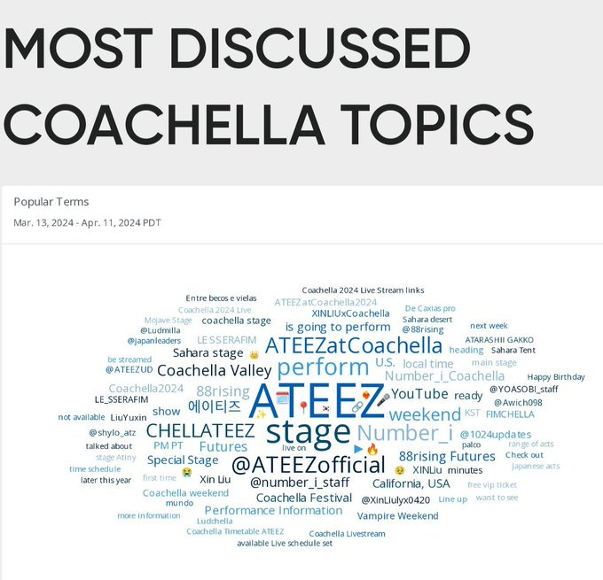 코첼라 관련으로 에이티즈가 가장 많이 언급됐다고 함
