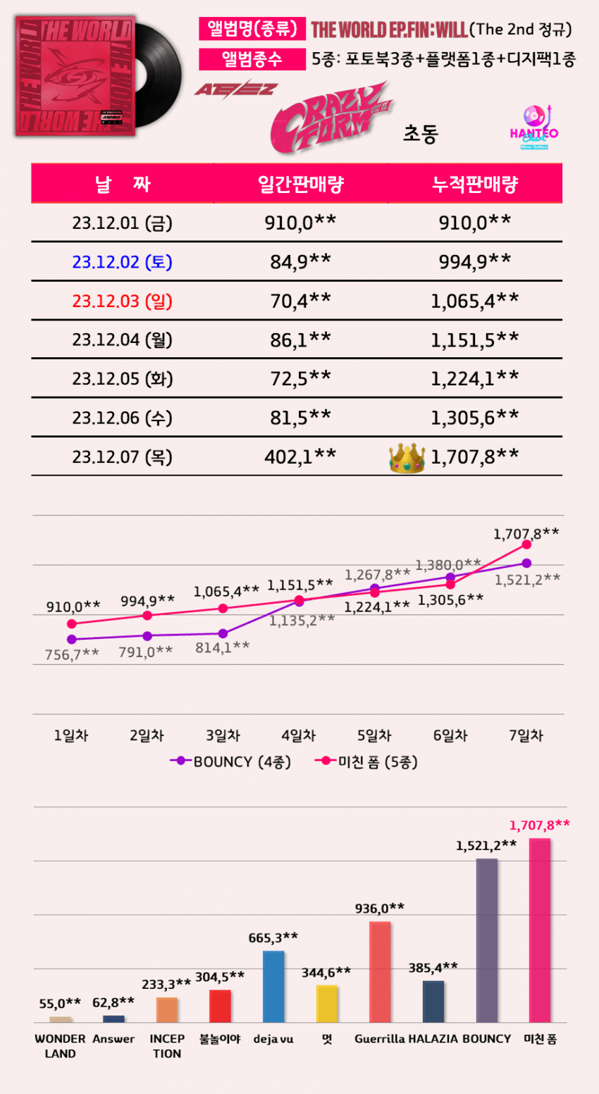그리하여 KPOP 그룹 7번째 빌보드 200 1위