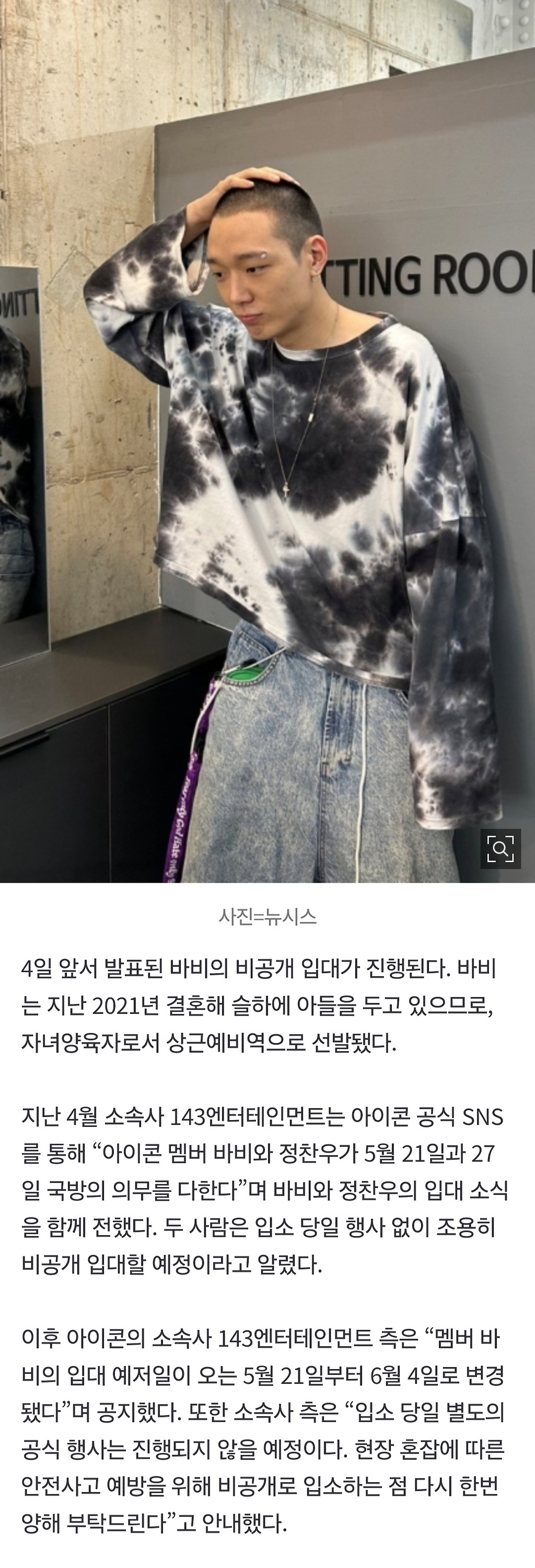 아이콘 바비, 오늘(4일) 비공개 입대…상근 예비역 근무