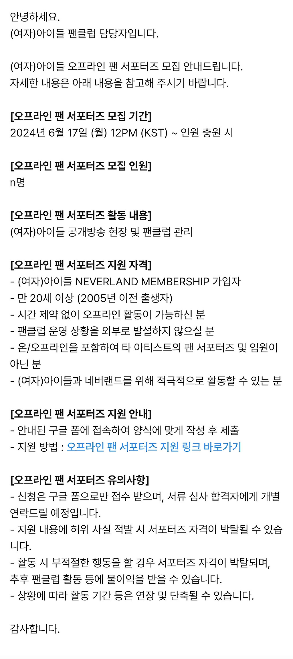 7월 한여름에 공방출첵하는 걸 팬들 시키겠다는 공지올라옴