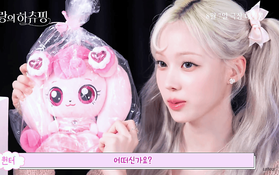 에스파 윈터 하츄핑 굿즈 언박싱gif