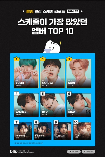 케이팝 스케줄 No.1 앱 '블립'은 12일 '2024년 7월 월간 스케줄 리포트'를 발행했다.
