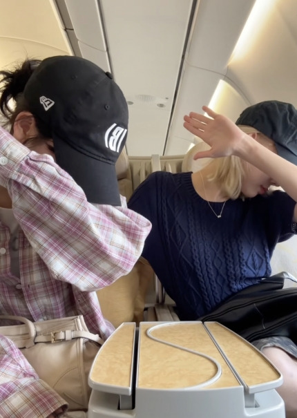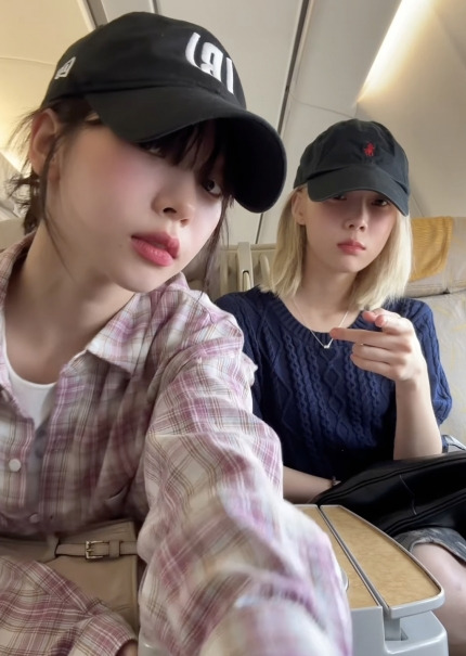 에스파 카리나·윈터, 비즈니스석에서 깜찍 셀카..최강 미모[스타IN★]
