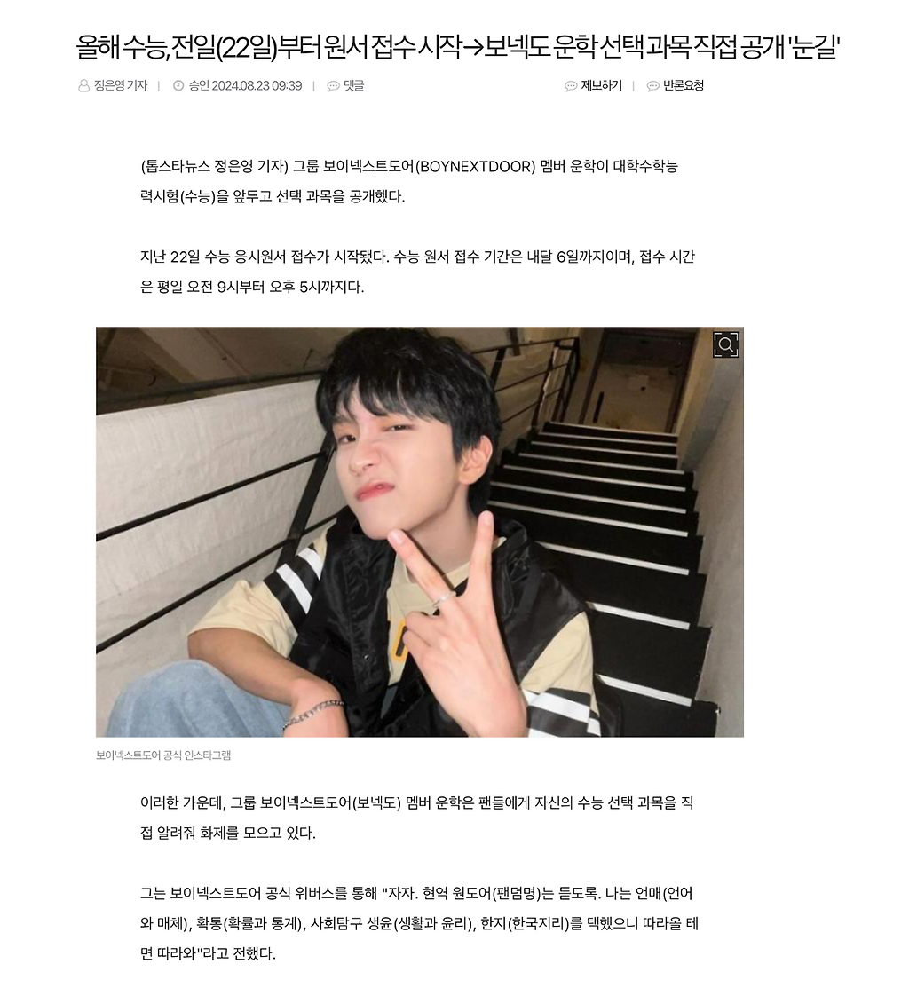 어제부터 수능 원수 접수 시작이었는데 시작되자마자 접수한 보넥도 막내 운학