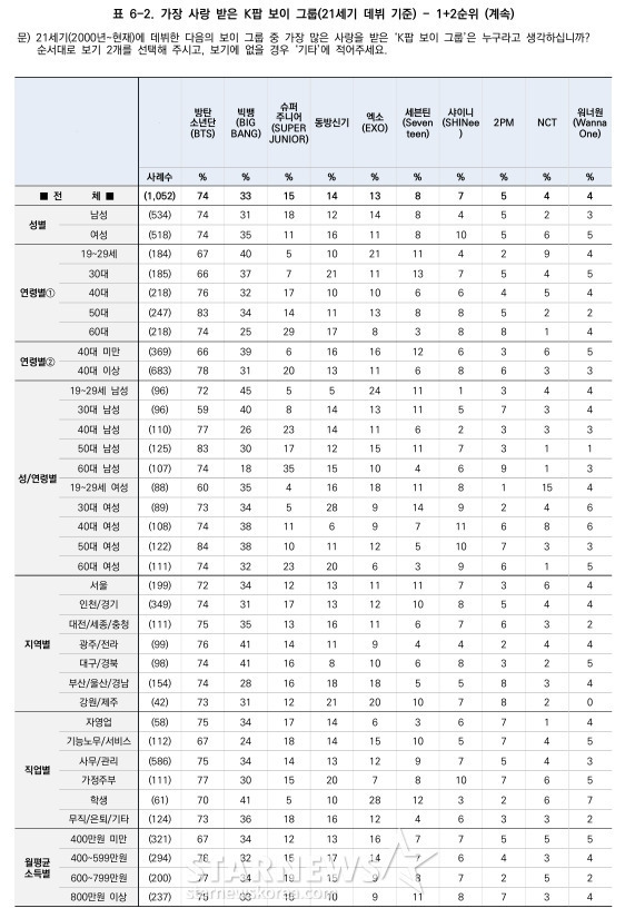 갤럽 가장 사랑받은 K팝 보이그룹 (21세기)