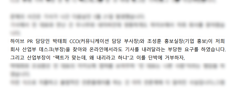 기자의 제보로 박태희 CCO와 함께 거론된 새로운 인물인 조성훈 하이브 홍보실장