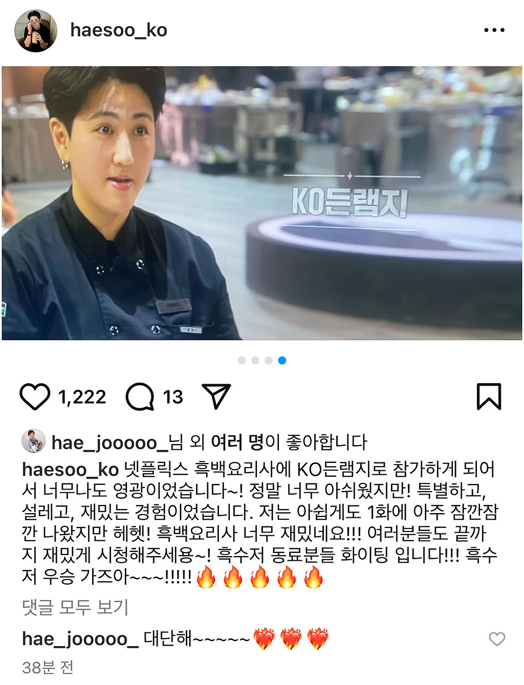 유튜버 해쭈 인스타 (넷플릭스 흑백요리사)