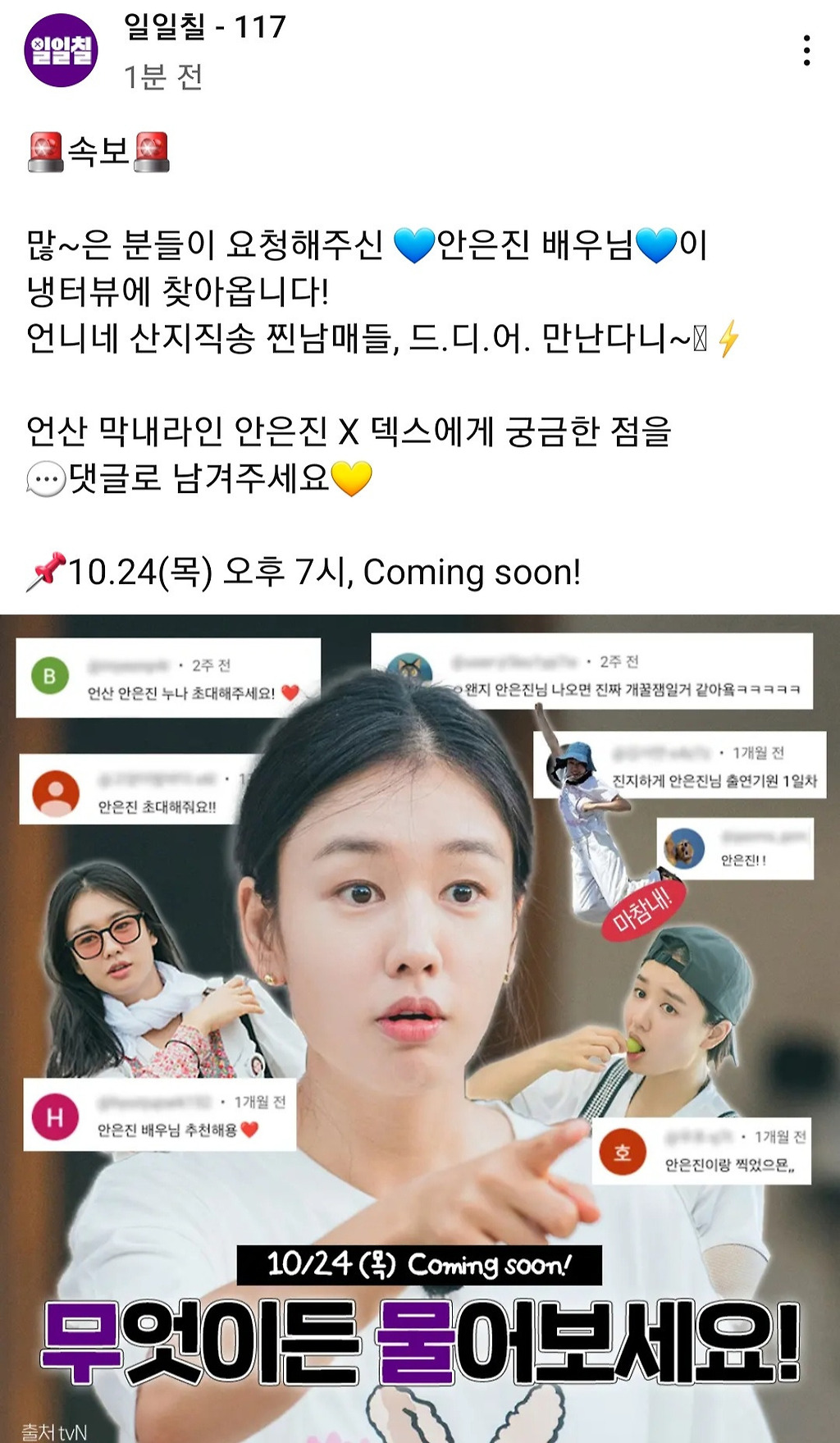 덱스의 냉터뷰에 안은진 뜰 예정이랍니다...!?!!