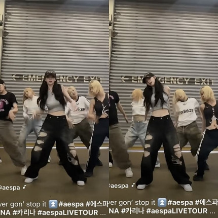 ‘업’은 도입부부터 카리나 특유의 쫀득한 목소리가 흘러나온 뒤 웅장한 비트가 시작된다. 곡 길이는 2분 47초. 3분 채 안 되는 길이지만 기승전결이 완벽해 듣는 재미가 쏠쏠한 힙한 댄스곡이다. ‘업’이 반응을 얻기 시작한 건 각종 숏폼에서 댄스 커버 및 챌린지로 입소문을 타면서다. 펑버짐한 바지에 볼캡을 쓴 카리나가 6명의 댄서와 ‘업’ 춤을 춘다. 카리나가 ‘아이 펌프 잇, 아이 펌프 잇’(I pump it, I pump it) 가사에 맞춰 시원하게 팔다리를 흔들 때면 묘한 쾌감까지 느껴진다.