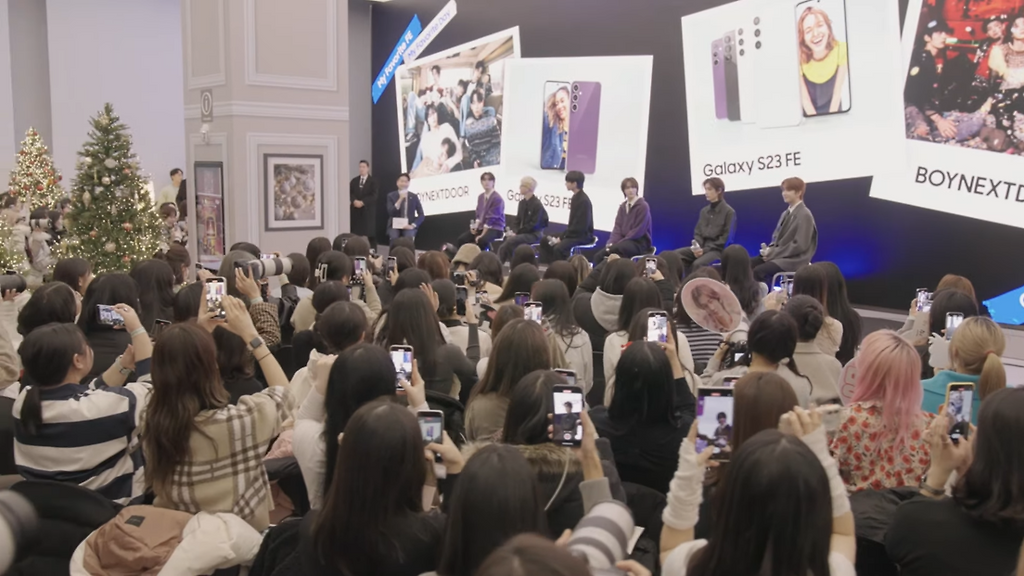 갤럭시 S23FE 런칭쇼에 보이넥스트도어 와 보이넥스트도어 팬 100명 초대 런칭 파티 열어줌