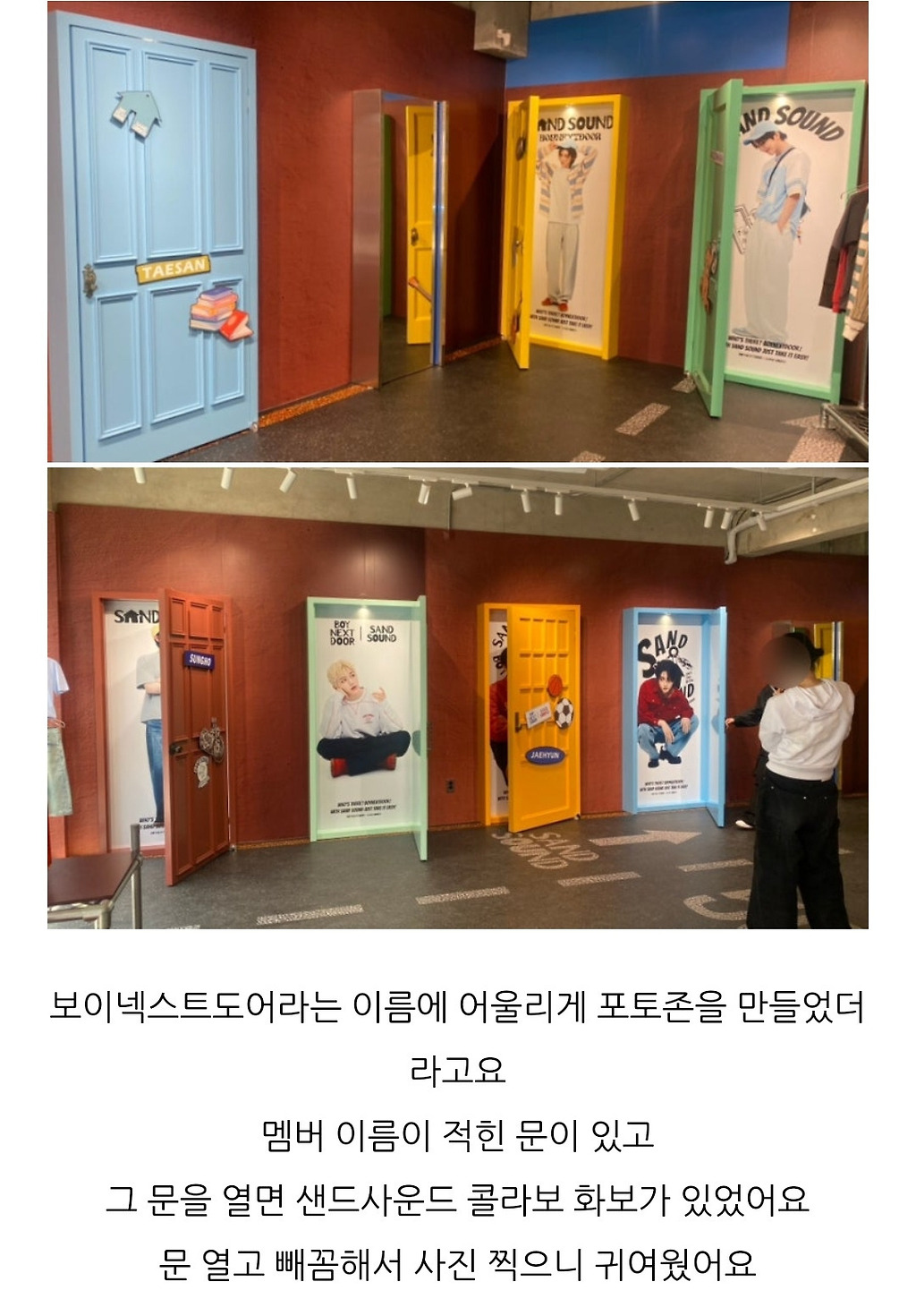 그룹명에 맞게 도어를 열면 멤버가 나오는 컨셉으로 만들어진 포토존