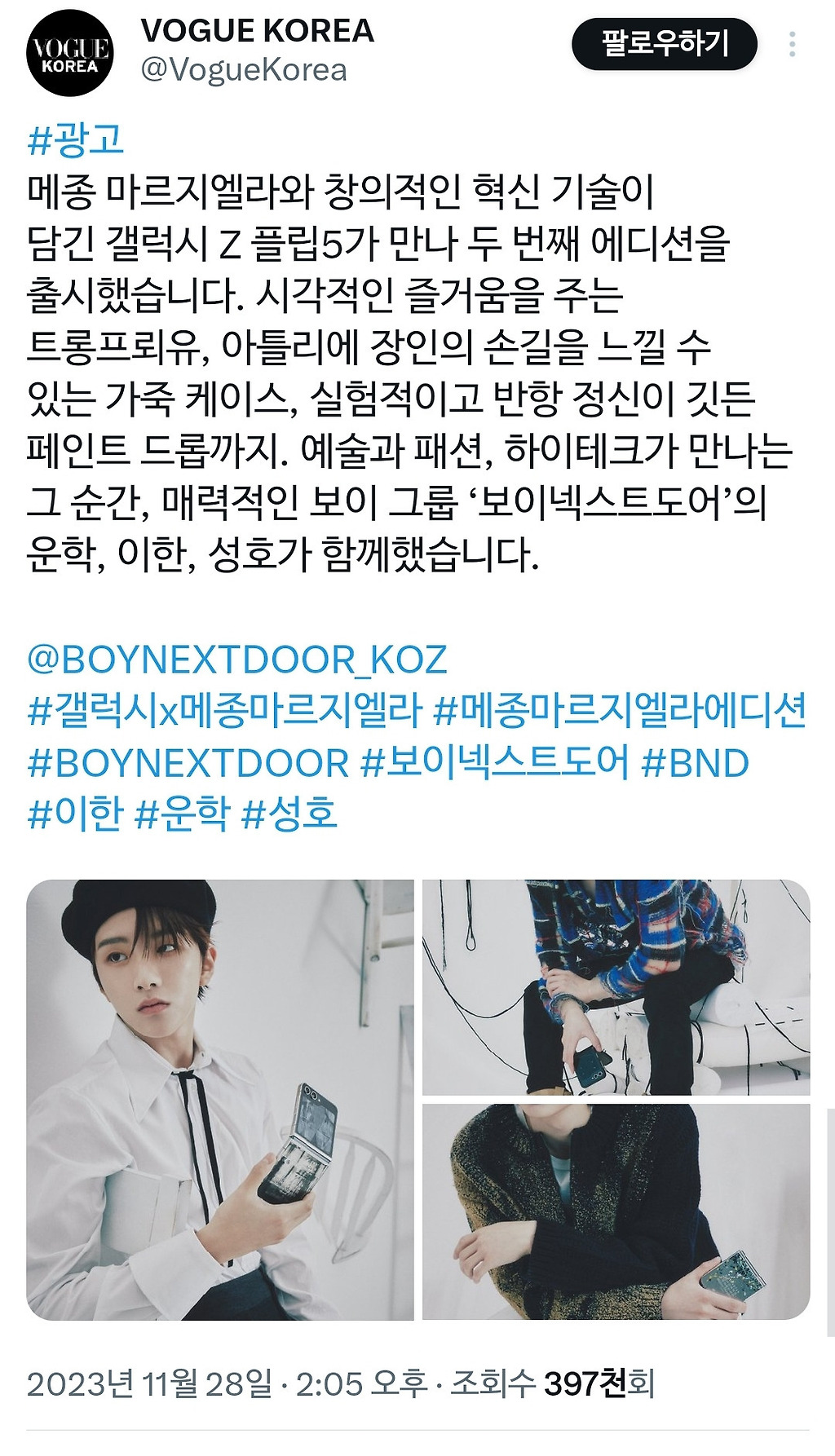 <보그>지 갤럭시 플립x메종마르지엘라 콜라보 화보 광고
