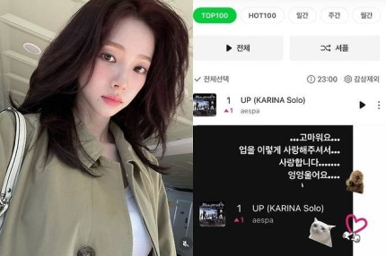 이에 이틀 뒤인 11일 카리나는 자신의 인스타그램 스토리를 통해 'UP'이 1위에 오른 화면을 캡처해 공유하면서 "고마워요 업을 이렇게 사랑해주셔서...사랑합니다 엉엉 울어요"라는 감사 인사를 전했다.