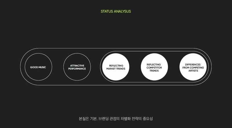 우선 디자인의 유사성이 눈에 띈다. 같은 템플릿(틀)을 사용한 것처럼 서체와 디자인이 비슷하다. 특히 원을 활용한 기법이 양쪽 모두 여러차례 등장한다. 뉴진스 기획안은 민 전 대표가 2020년 5월 하이브 최고브랜드관리자(CBO) 시절 키노트(프레젠테이션 프로그램)로 직접 디자인하고 내용을 작성해 임원 보고를 한 것으로 알려졌다. 혹시 하이브 전체가 같은 탬플릿을 사용하는지 확인한 결과, 레이블마다 각기 다른 템플릿을 사용하는 것으로 확인됐다.