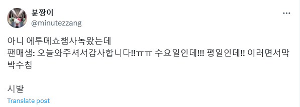 팬매가 평일 사녹 와줬다고 일일이 감사인사 한 아이돌 오늘자 근황