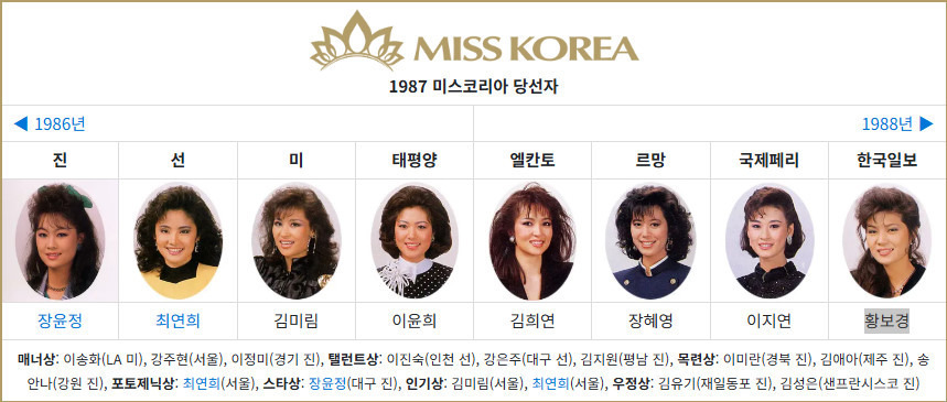 1987 미스 남가주(LA) 진 & 미스코리아 한국일보