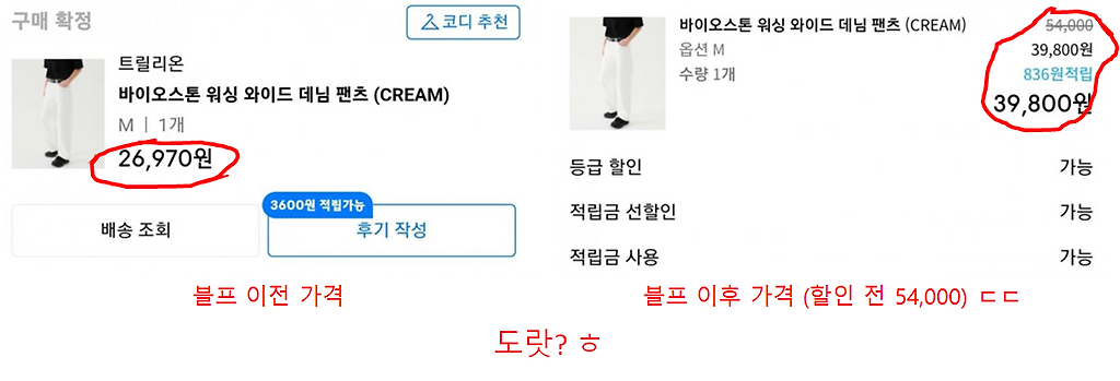 무신사 블프 할인가가 할인전 가격보다 더 높은 상황 속출해서
