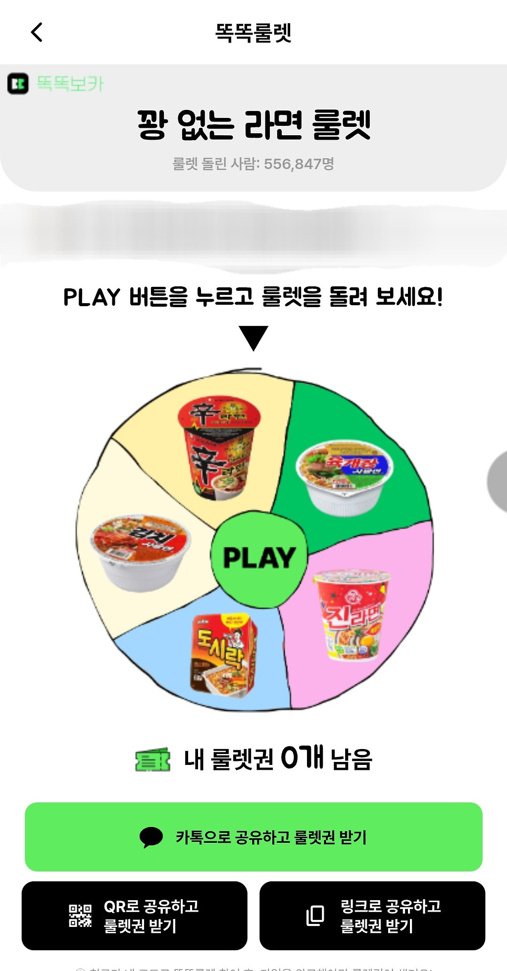 룰렛이 있는데 play를 누르고 가입을 하시면 라면 기프티콘을 무료로 얻을 수 있습니다!