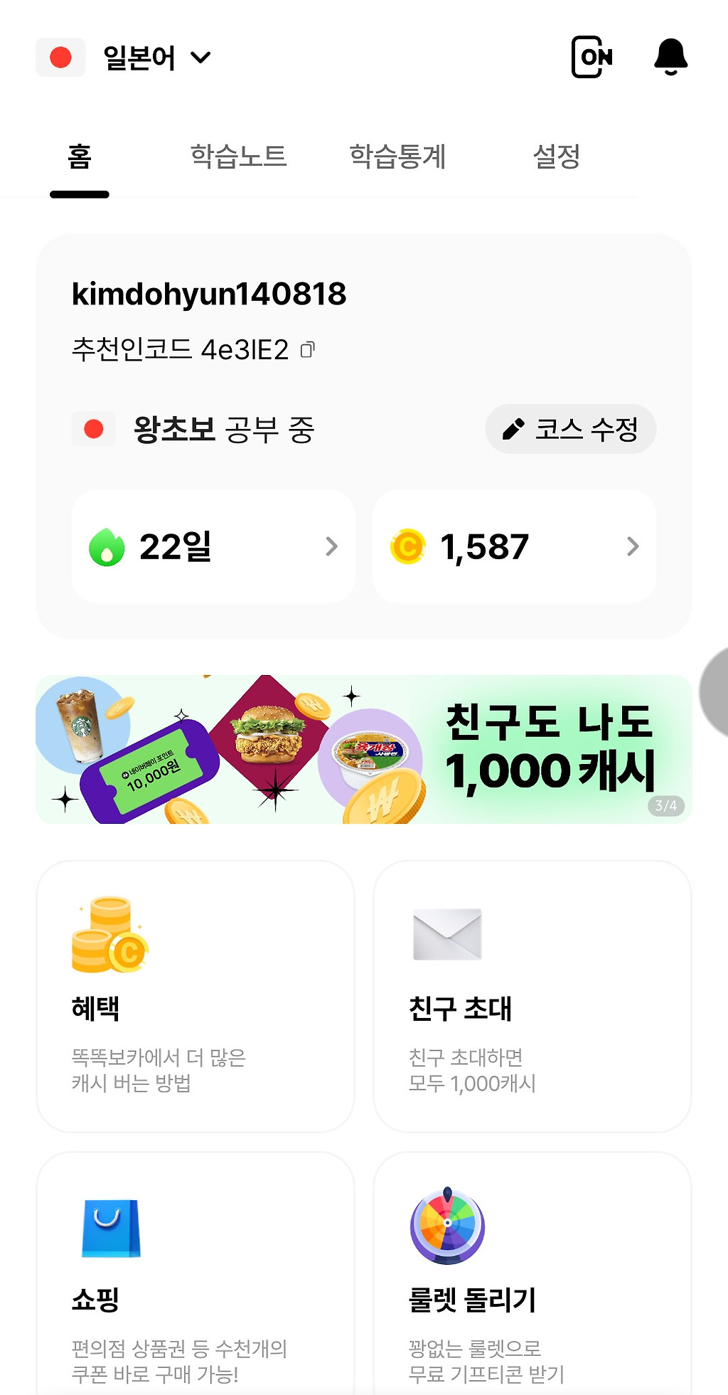 추천인 코드 가입할때 입력하면 1,000캐시도 그냥 줍니다!