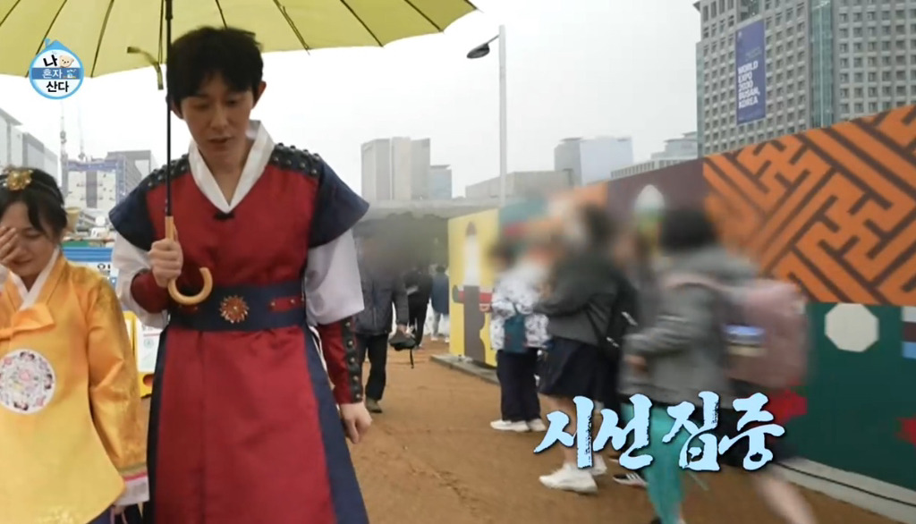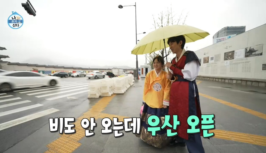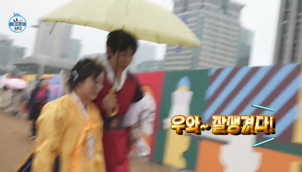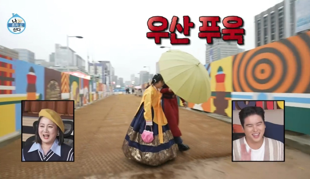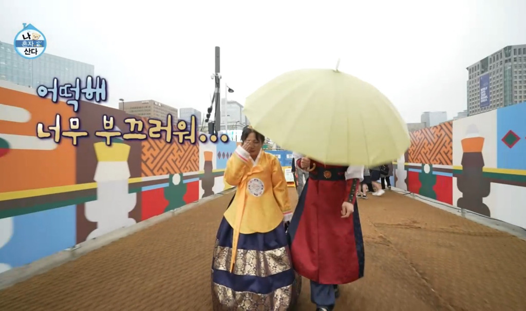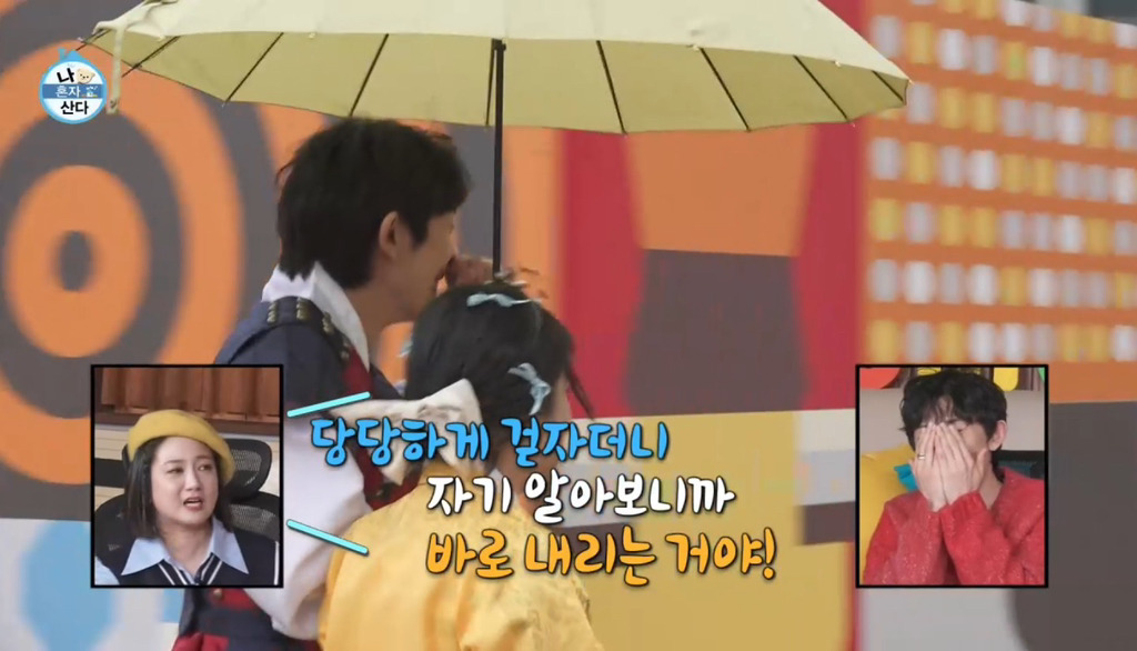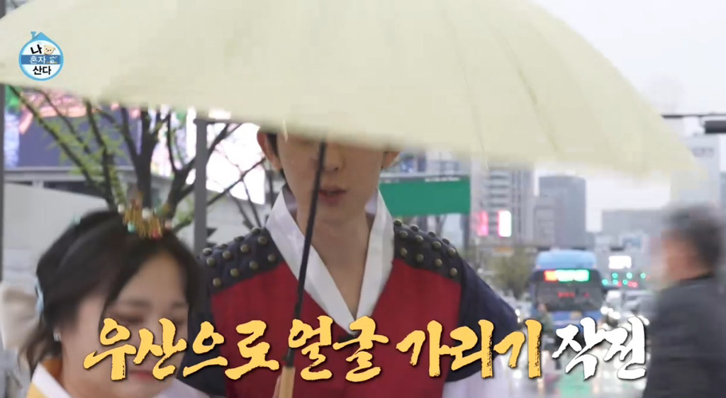 급기야 부끄러움을 참지 못하고 우산으로 가려버림