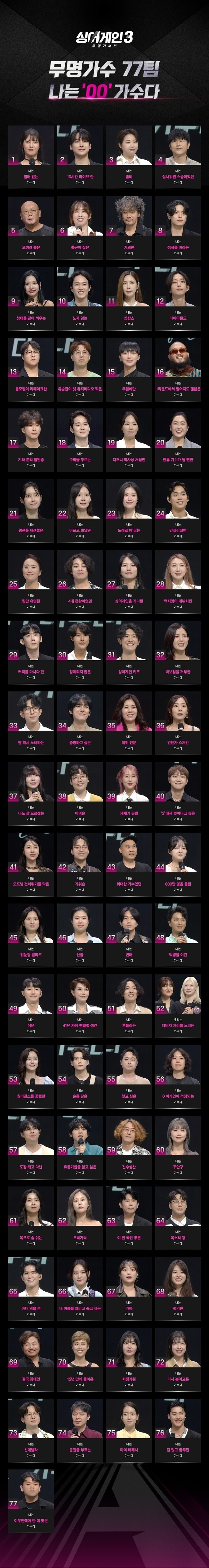 싱어게인3 본선 참가자 77명 공개 (+이름 언급 된 참가자들)