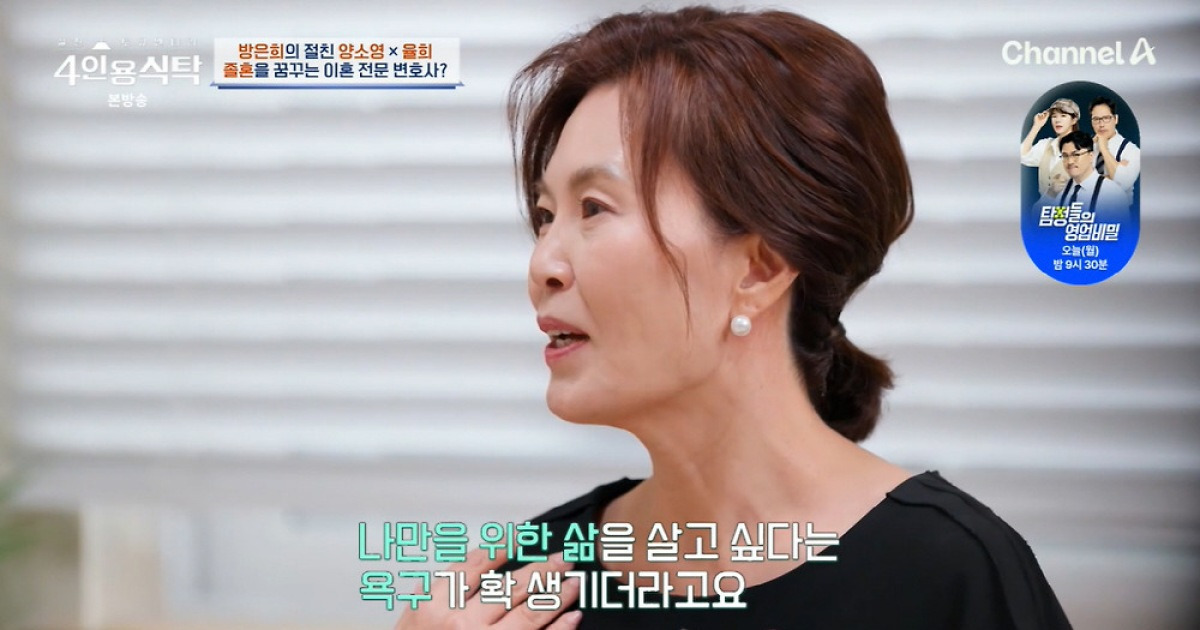'세자녀 서울대' 양소영 변호사 졸혼 선언 "남편 얼굴 못들고 다녀"(4인용 식탁)