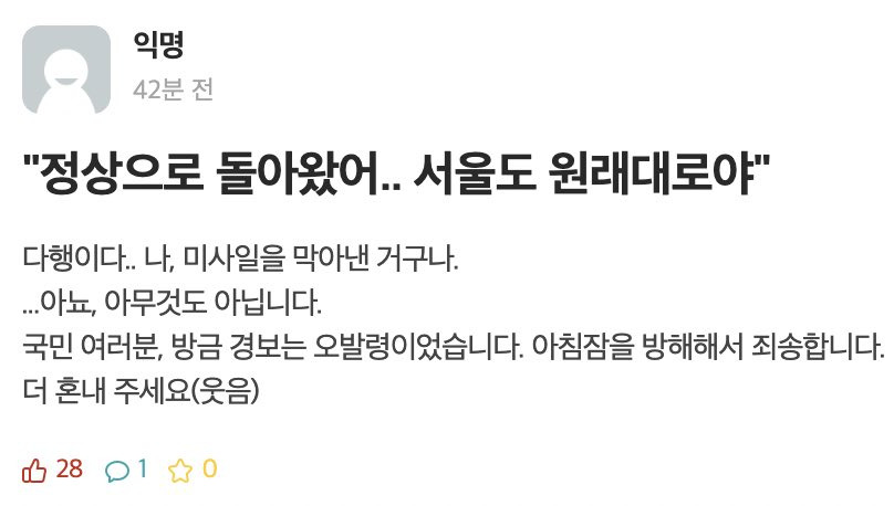 아침에 서울쪽 재난문자 오발령 문제가 있었는데