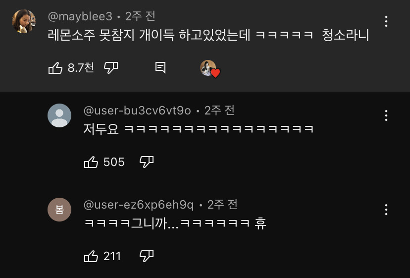 댓글 다 마실 생각뿐임 ㅋㅋㅋㅋㅋㅋㅋㅋㅋㅋㅋ근데 아무리 봐도 맛있겠는데요🤤해당 영상 : https://youtube.com/shorts/ndl9I3fMcU4?feature=share