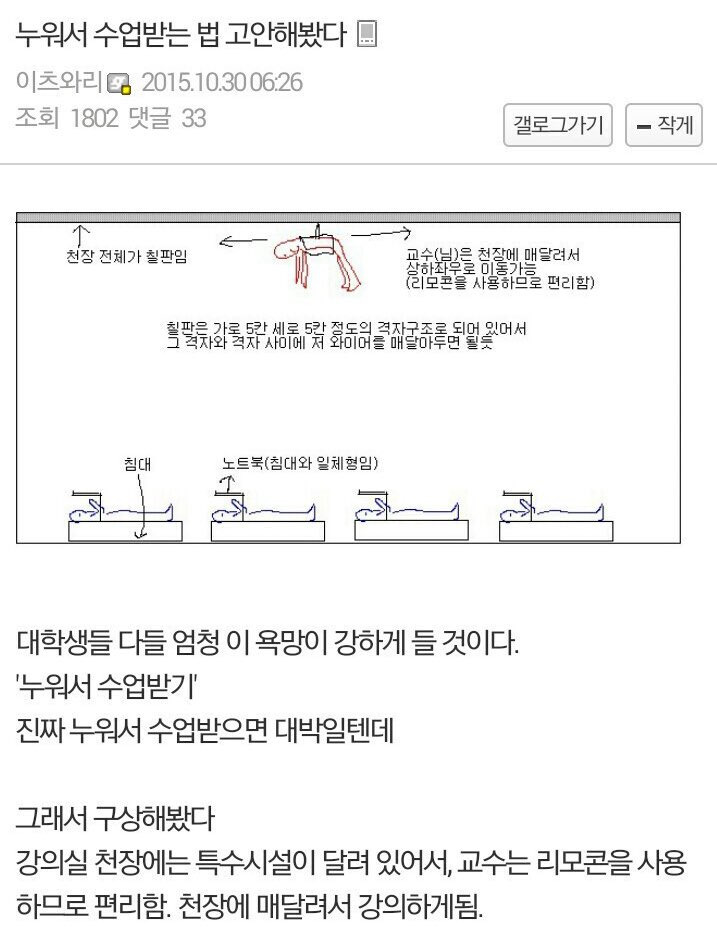 누워서 편하게 수업받는 법(교수 인권 없음)