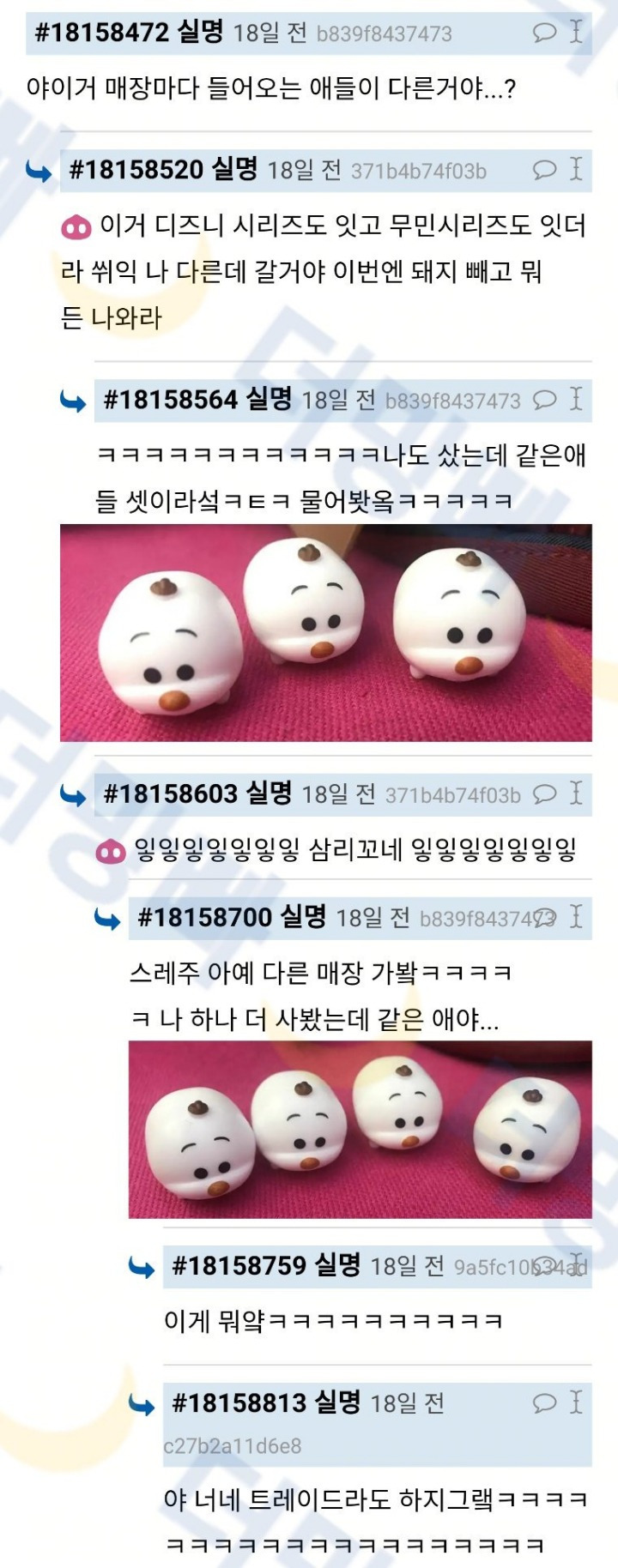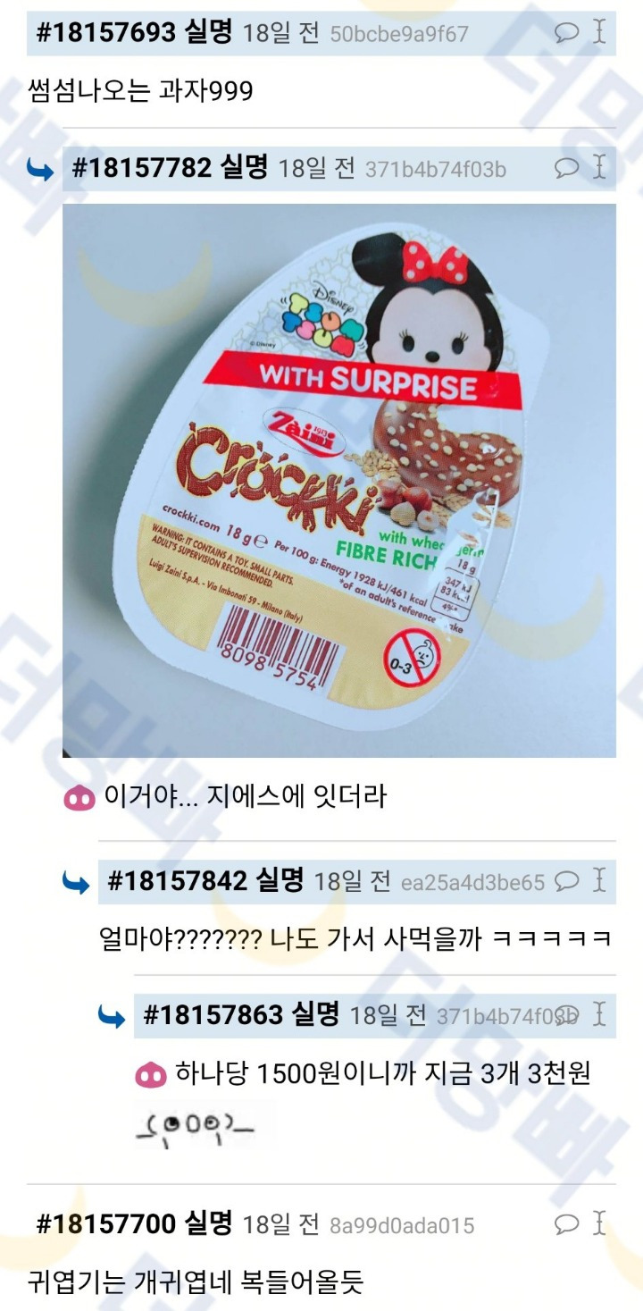 디즈니 썸썸 피규어 나오는 과자 2+1이길래 3개 샀는데